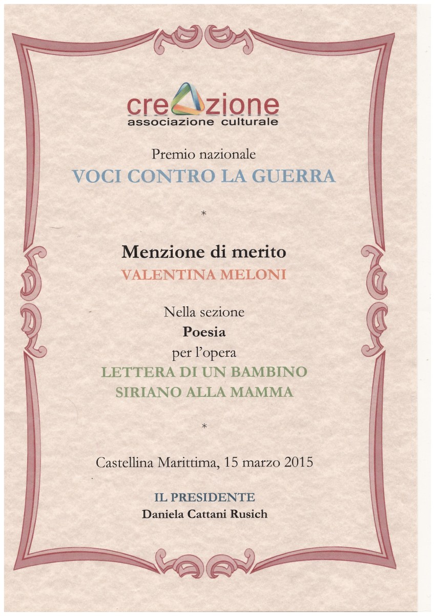 menzione voci contro la guerra Pubblicato marzo 20, 2015 su 2481 × 3507 in Partecipazioni poetiche ← Precedente Successivo → Mi piace Caricamento...